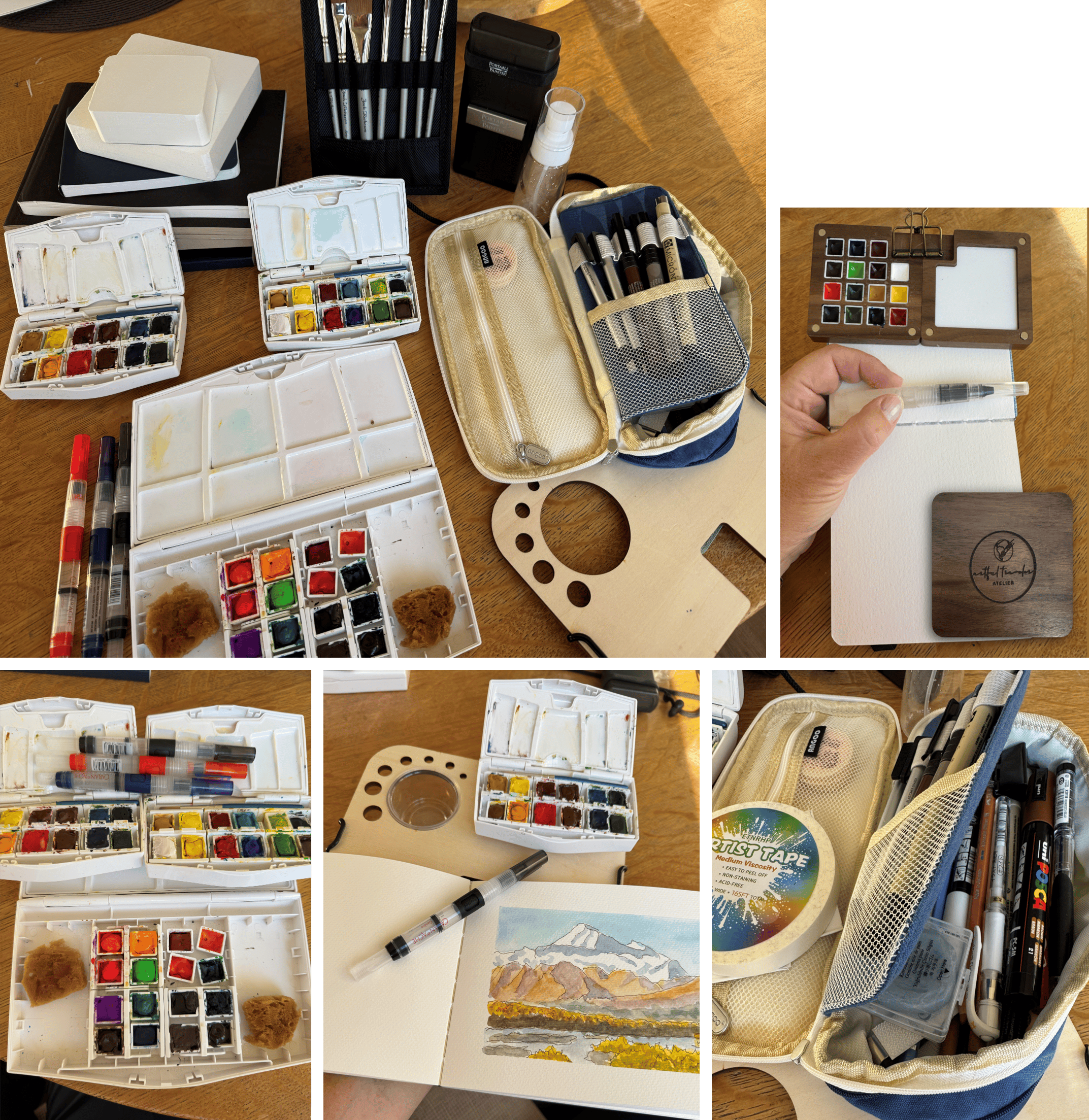 And after an exhausting search (phew!), I finally found the perfect art bag: sturdy but not bulky, with just enough pockets for paint, brushes, portable palette, pens, tape, water container and a tiny spray bottle...not to mention a phone, some lip stuff, my passport, air pods, sunscreen and probably some money or at least a credit card. And most importantly, my sketchbooks - and they fit like a glove. (Are you envisioning an I'm sorry ma'am, that bag's too big for the overhead compartment bag? Nope. It's just a clown-car bag.) It’s funny how something as simple as the right bag can make you feel completely ready for the road (and bus, and plane, and ship) ahead.